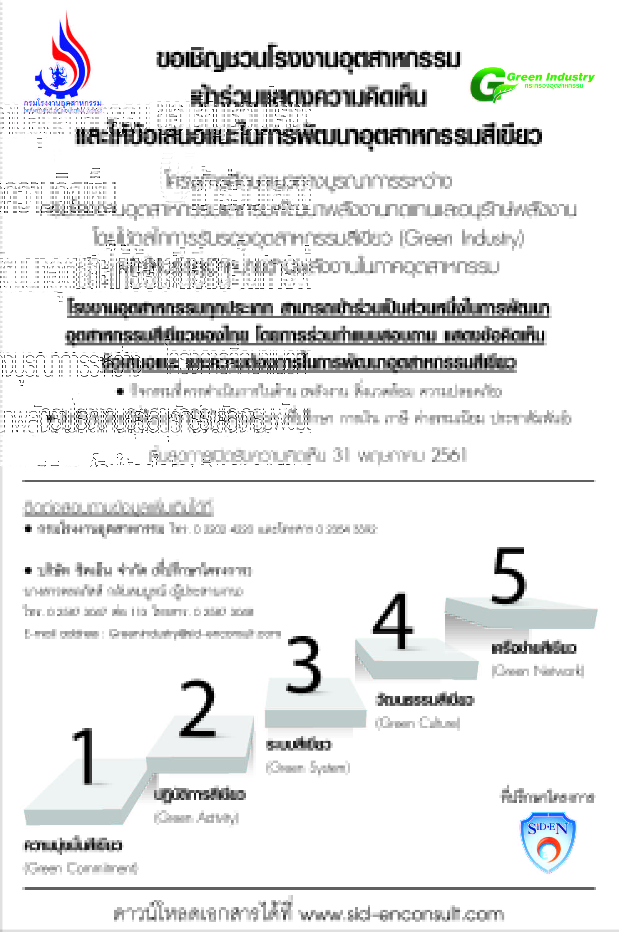 สมัครฟรี!! ขอเชิญชวนโรงงานอุตสาหกรรม สมัครเข้าร่วมโครงการ และให้ข้อคิดเห็น ข้อเสนอแนะในการพัฒนาระดับอุตสาหกรรมสีเขียว Download แบบสอบถาม